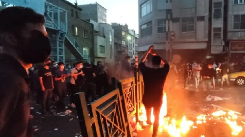 Im Norden der Stadt brennen die Al-Rasul-Moschee und Gebäude in Saadat Abad, während Demonstranten "Tod Khamenei" rufen. In Narmak sind Schüsse und Schreie zu hören, während Gebäude in Flammen stehen.