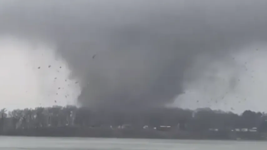 Im Internet veröffentlichte Bilder zeigen große Tornados, die sich schnell bewegen und auf ihrem Weg Zerstörungen verursachen.